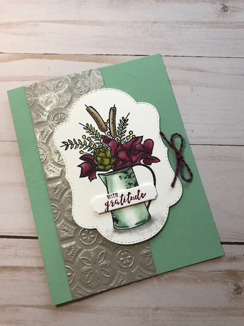 I have so many favorites in this catalog - the milk can or pitcher in Country Home, the Tin Tile Embossing Folder, Take Your Pick Tool, the Timeless Tidings kit, I could go on. Here is my top favorite. It's such a beautiful set and the watercolor wash background can be used on any occasion!